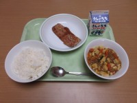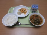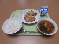 ごはん ぎゅうにゅう とりにくのからあげ やさいいため わかめのみそしる