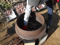 12月10日、中庭で1・2年生が焼き芋をしました。放課後子ども教室コーディネータ...