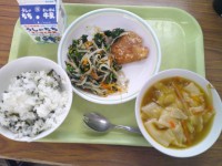 今日の給食のメニューは、ご飯、牛乳、わか...