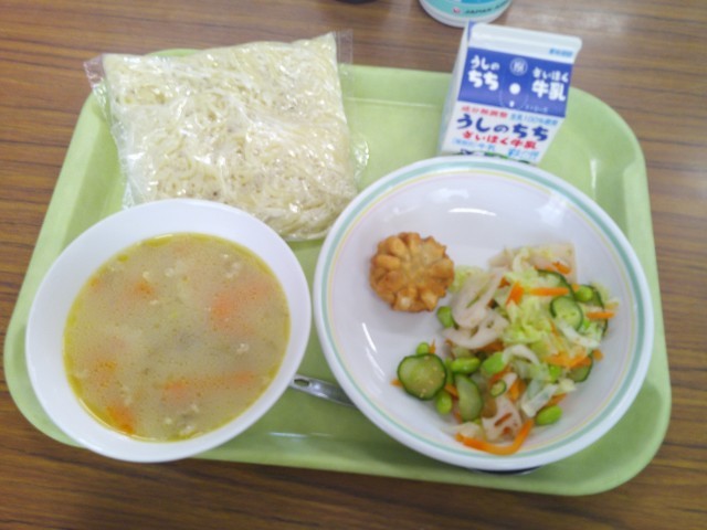 9月17日の給食 公開日 2025/09/17 更新日 2025/09/17 給食 今日の給食のメニューは、とんこつしおラーメン、牛乳、あげにらまんじゅう、さくさくサラダです。とんこつしおラーメンは、新メニューとのことです。