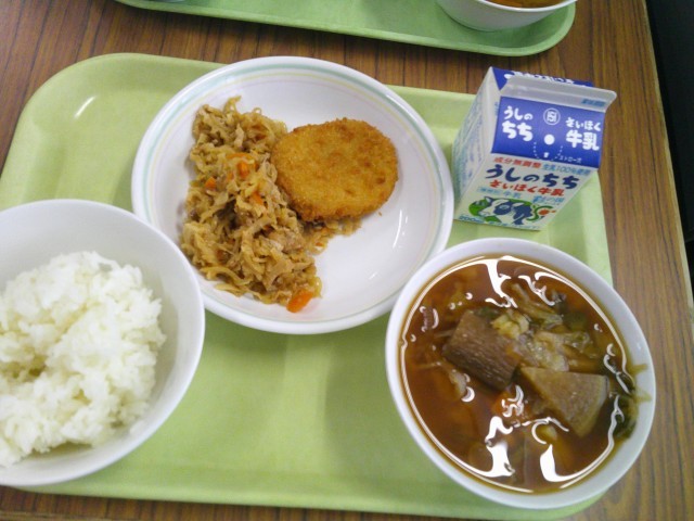 11月13日の給食 公開日 2025/11/13 更新日 2025/11/13 給食 今日の給食の献立も、埼玉県にちなんだ献立です。ご飯、牛乳、かわじまごじる、ふかやねぎメンチカツ、きりぼしだいこんのにものです。かわじまごじるの大豆とみそは東松山産です。