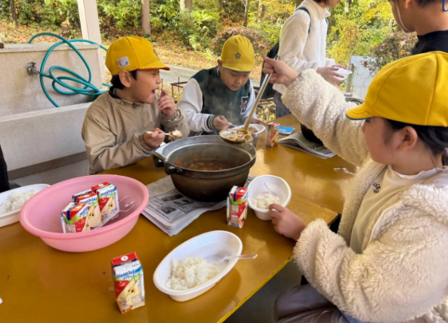 11月21日(木)、22日(金)に、4・5年生は待ちに待った宿泊学習に行ってきました。キャンプファイヤーでは、猛獣狩りにゲーム等をして楽しむことができました。2日目は班のメンバーと協力しカレー作りをしました。友達と力を合わせて作ったカレーはとても特別だったようで、食べている子どもたちの顔は笑顔で溢れていました。心に残る思い出の味となり、とても楽しい宿泊学習でした。準備等ご協力いただき、ありがとうございました。