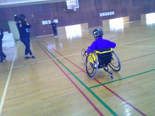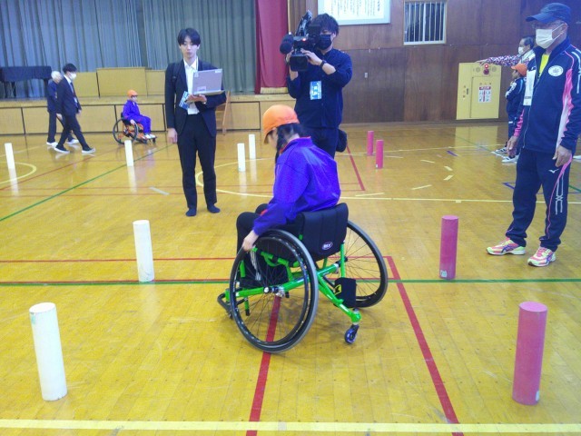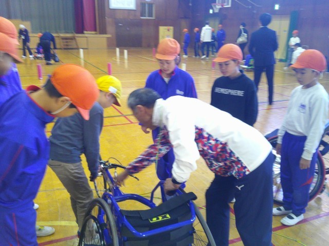 11月28日(金)の5、6時間目に4年生が総合的な学習の時間の学習としてパラスポーツの体験授業を行いました。埼玉県障害者スポーツ協会の皆様をお招きし、車いす体験をしました。通常の車いすと競技用の車いすの種類の違い(形・重さ)等の説明を聞いたり、実際に持ち上げたりしました。その後、実際に車いすに乗って、スラローム体験をしました。