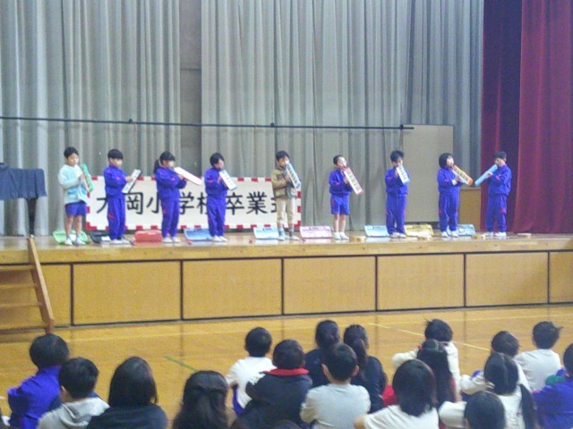 タンブリンなどの打楽器と鍵盤ハーモニカを使って、「なかよし」の演奏をしました。その後、「ありがとうの花」の歌を発表しました。歌の振り付けは自分たちで考えたそうです。発表まで一生懸命練習し、とても良い発表ができました。寒い朝でしたが、とても心温まるひとときとなりました。