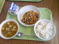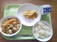 今日の給食のメニューは、ご飯、牛乳、豆腐のちゅうかに、たらのにんにくバターしょう...