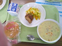 今日の給食のメニューは、メンチカツバ...