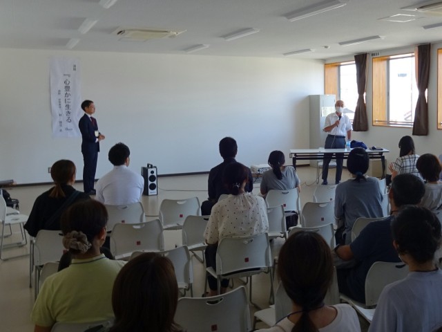 今年度のテーマは「心豊かに生きる」。講師として世明寿寺のご住職 林 龍生 様をお招きし、日々の生活の中で小さな幸せに気づくこと、人とのつながりを大切にすることなど、心を耕し、人生をより豊かにするためのお話をいただきました。