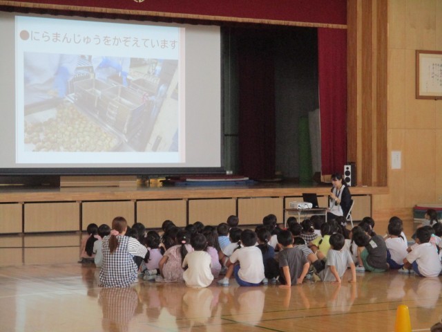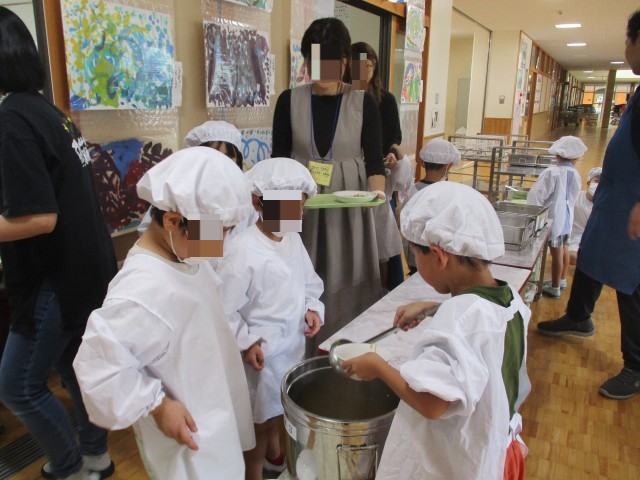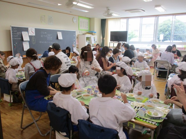 今日は、1年生の給食試食会を実施しました。保護者の方にもご参加いただき、子供たちの給食の様子を実際に見て、体験していただく機会となりました。配膳は子どもたちが自分たちで行い、給食当番としての役割もしっかりと果たしていました。保護者の方々も一緒に配膳を受け、同じ献立を味わいながら、和やかな雰囲気の中で交流することができました。5校時は、体育館で給食ができるまでの過程や、栄養についてのお話を給食センターの栄養士さんから聞きました。普段の給食時間の様子を知っていただくことで、ご家庭での食育にもつながることを願っています。ご参加いただいた皆様、ありがとうございました。