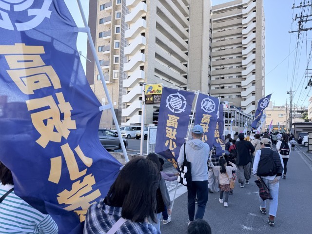 高坂小学校からは、PTAの皆さんを中心に多くの方が参加しました。沿道では地域の方々から温かい声援をいただき、笑顔あふれる行進となりました。