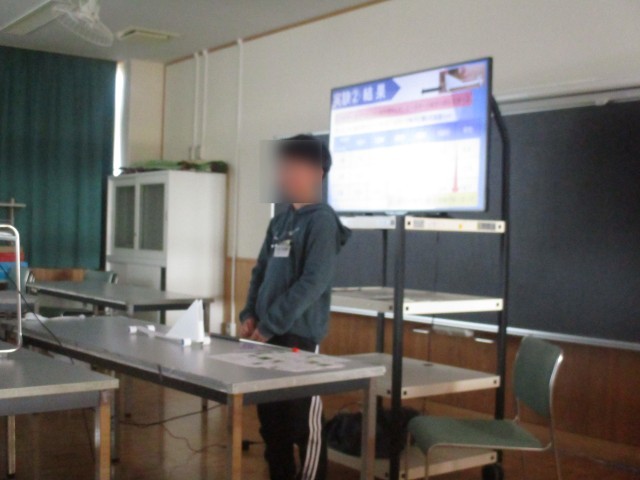 実験の内容をまとめたスライドや模型を示しながら、わかりやすく説明ができました。自分が興味を持ったことを楽しみながら深めた様子がよく感じられる発表となりました。