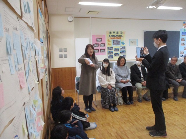 交通指導員さんや見守り隊、学校応援団の皆様をお招きし、「感謝の会」を行いました。毎日の登下校の見守りや、学習・行事への温かなご支援により、子どもたちは安心して学校生活を送ることができています。集会では、体育館工事のため、オンラインとなりましたが、代表児童による感謝の言葉や呼びかけ、歌のプレゼントがあり、日頃の思いを伝えることができました。子どもたちは、多くの方に支えられて成長していることを改めて実感する、心温まる時間となりました。