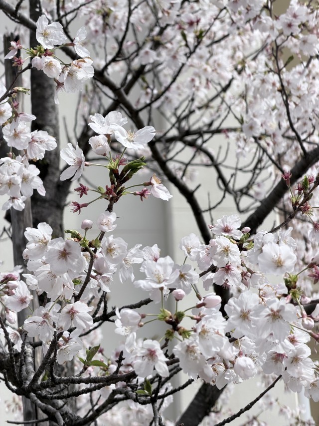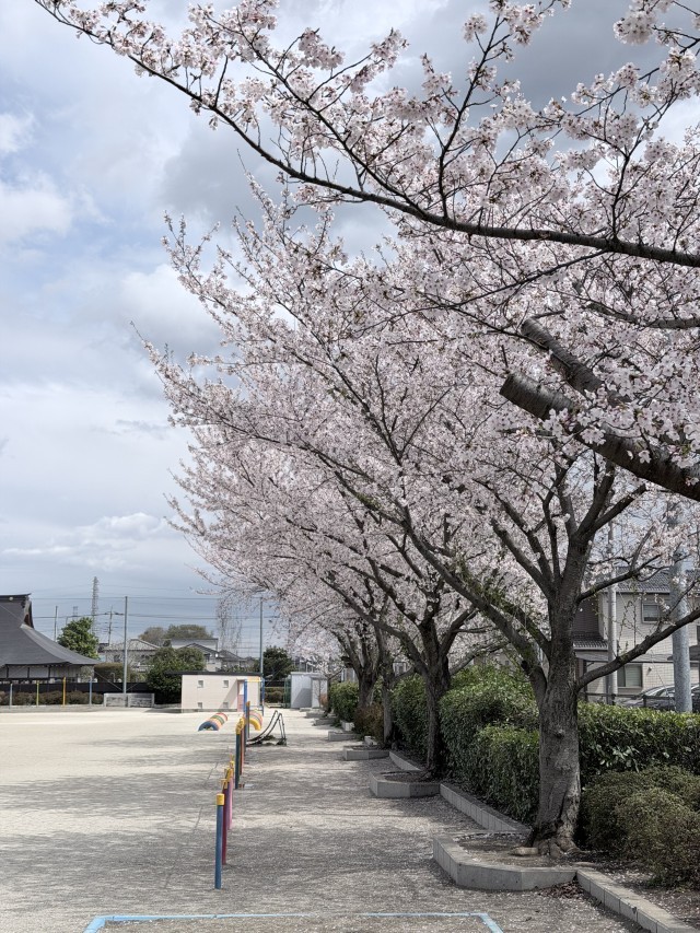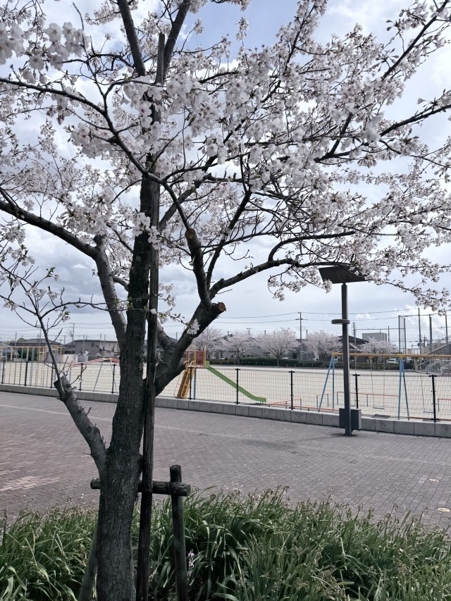 子どもたちの新しいスタートを祝うかのように、今年も桜が美しく咲いています。