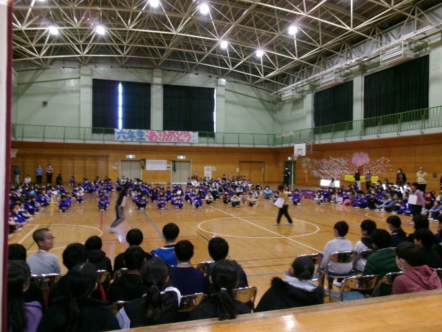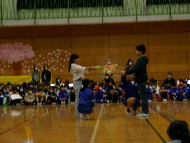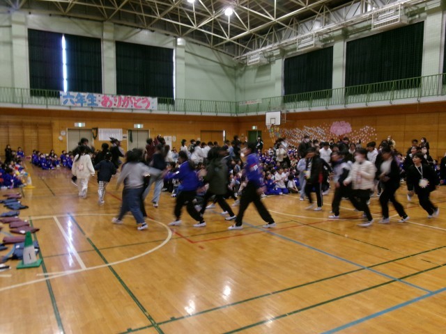 1年生お誕生月なかまの歌、2年生ごんぎつねの歌、3年生元気スイッチオン体操、4年生カリスマックス、5年生YouTuberと、それぞれの学年が工夫して6年生へ感謝の気持ちを込めて、歌や劇でお祝いをしました。