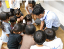 低学年ブロックでは、「3つのかずのけいさん」の単元で授業業研究会を行いました。途中、自力解決が難しいと考えている児童を集めてヒントを提示する場面が印象的でした。