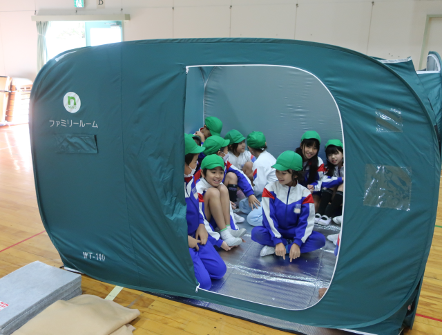 東松山市役所危機管理防災課の職員の方々による防災学習(避難所体験講座)を実施しました。東日本大震災や台風による自然災害の被害状況や備えや取り組みなど防災について説明をしていただきました。また、防災倉庫の見学や避難所体験として、簡易ベットやトイレ、ファミリールームなど実際に触れさせていただきました。