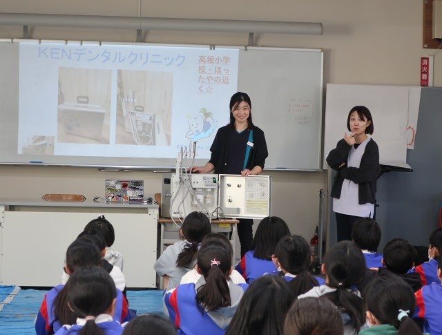 6年生総合「未来の自分を考える」学習として歯科医さんと歯科衛生士さんをお迎えしました。どのように歯科医、歯科衛生士になったのか、また日頃の仕事内容など丁寧に説明してくれました。児童たちは「たくさん失敗しても失敗から得られるものはたくさんある。次に生かせればOK」「失敗を恐れずたくさんのことにチャレンジしてほしい」という励ましの言葉をいただきました。