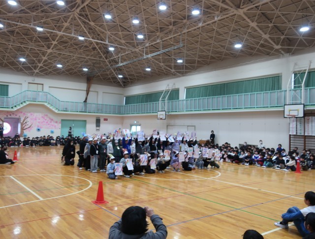 6年生たちは、下級生にとってやさしく頼りがいのある存在でした。下級生たちからは「中学校に行ってもがんばってください。」「今までありがとう」など、6年生との思い出を劇で表現したり、歌や演技などであたたかなメッセージを送っていました。6年生たちからも在校生にエールを送ってくれました。6年生が退場すると、涙をながしている児童もいました。