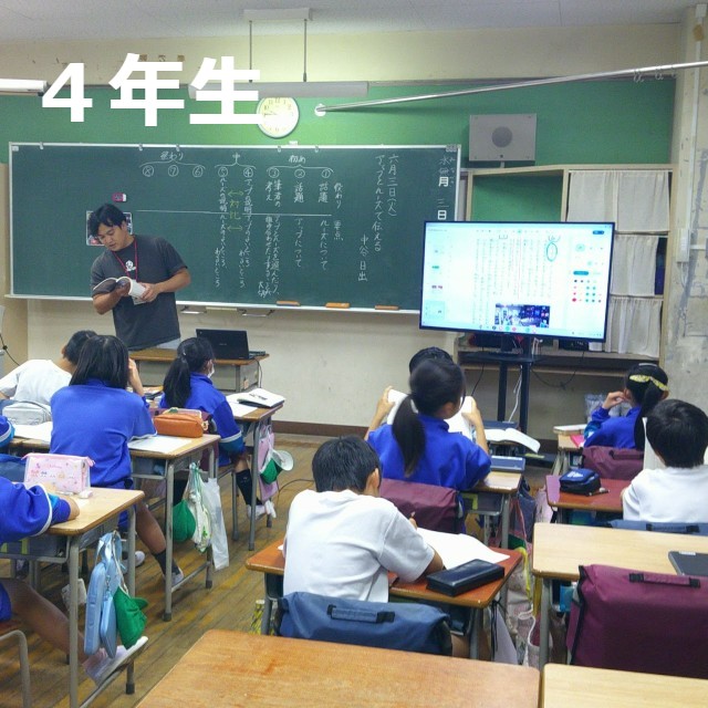 (4年生)2クラスが4つに分かれて国語の学習を進めています。