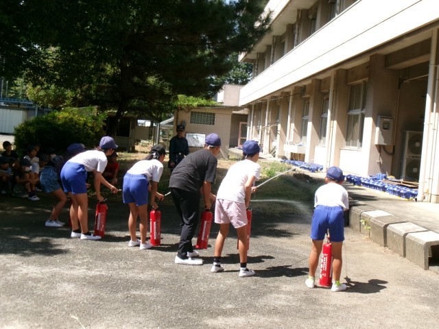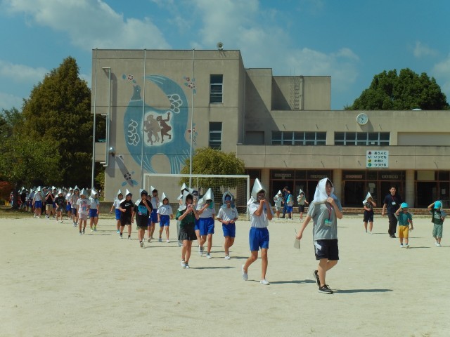 地震から火災が発生するという設定で、避難訓練を行いました。「お」「か」「し」「も」「ち」を守り、素早く非難することができました。大変暑かったため、校庭に避難して報告を行ったクラスから、教室へと戻りました。戻る際もとても静かに行動できました。
