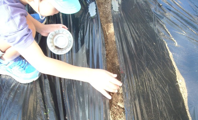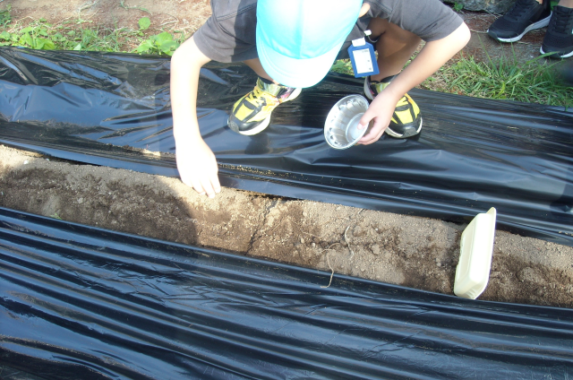 9月25日(木)冬野菜の種まきをしました。「これが人参の種なの?オレンジ色のごまみたい!」といつも見ている野菜の種の姿にびっくり。種をまいたら優しく土のお布団をかけてくれました。元気に育ったらみんなで食べようね。