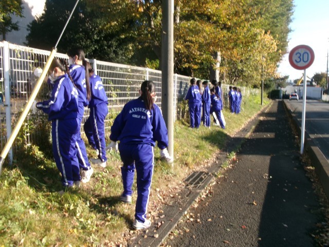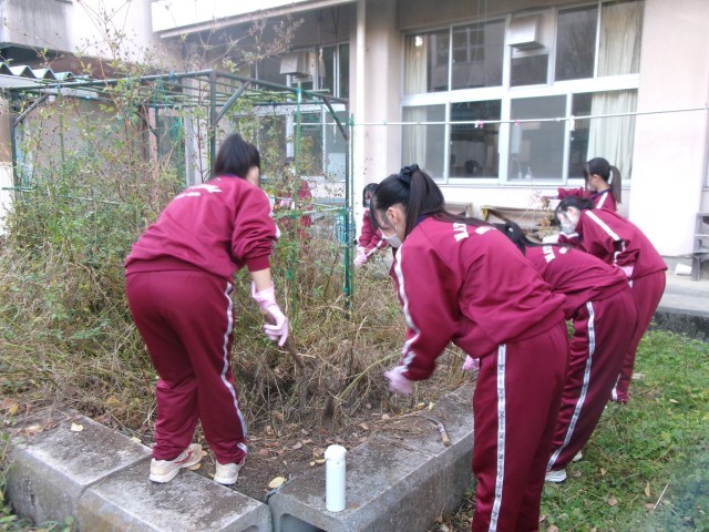 11月10日(月)松山女子高等学校の生徒さんが、青鳥小学校に1日訪問しました。各クラスに入り学習のサポートをしてくれたり、一緒に遊んでくれたりしました。放課後には、花壇の草取りや敷地周りのツルを取り除く作業も行ってくれました。