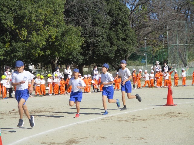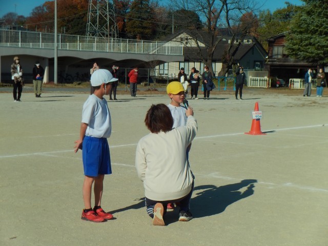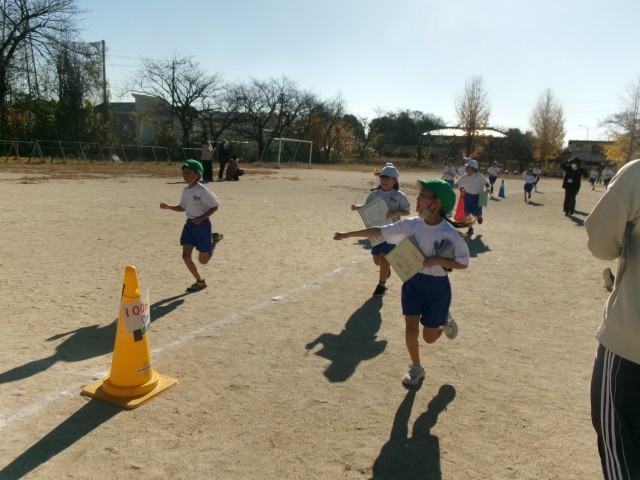 ペース走記録会が行われました。今までとは違い、決められた時間にどのくらいの距離を走ることができるか、前回の記録よりどれだけ距離を伸ばせるかに挑戦しました。記録するペアの友達が、残り30秒で声を掛けて走ることで、最後まで力を緩めずに走りきることができていました。保護者の方の他に、みどり保育園の子たちが、旗を振って応援をしてくれました。ありがとうございました。