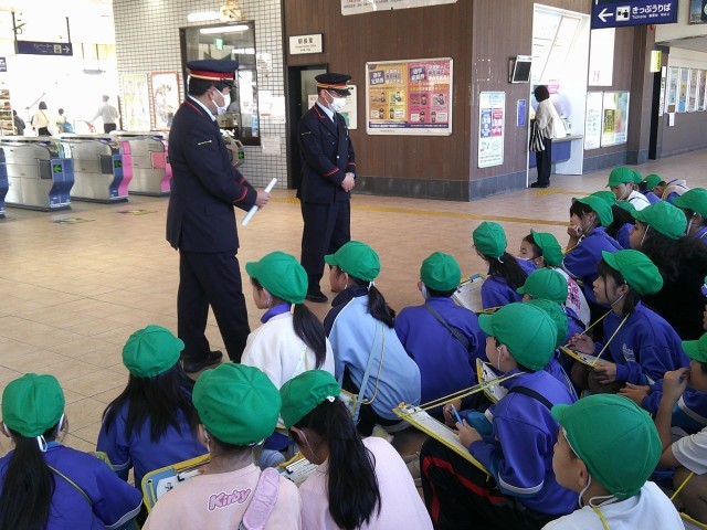 総合の学習で、ボランティアの保護者の方も参加していただき、森林公園駅に福祉の設備や、工夫を探しに見学に行きました。