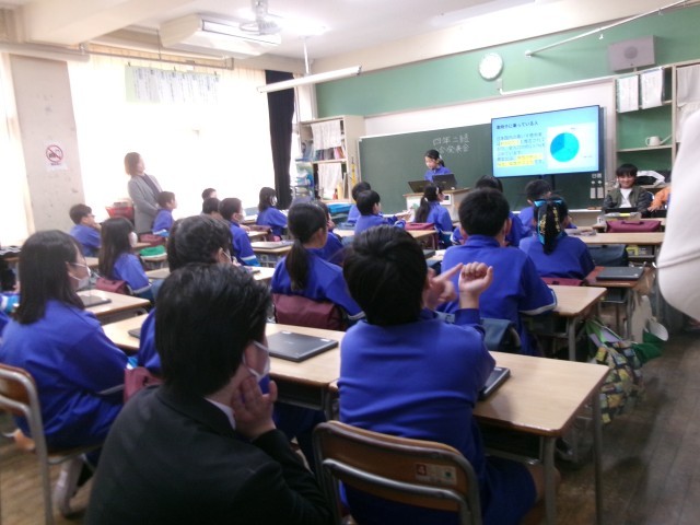 学級閉鎖で延期となっていた、今年度最後の授業参観(2年4年)が行われました。2年生は、1年間でできるようになったことの学習発表会。4年生は、総合学習で行っていた「福祉」について、一人一人がテーマを決めて、グラフや写真で分かりやすくまとめて発表をしました。どの学年も、一年間の頑張りや成長が見られるまとめの授業となりました。