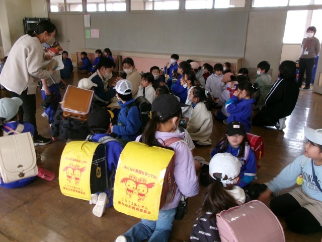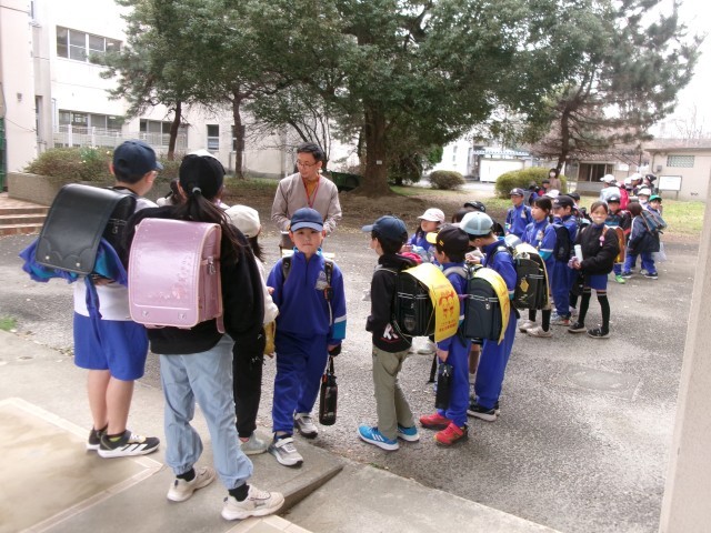 3月2日(月)通学班編成をしました。3日から新班長さんに班旗が渡され、6年生は、後ろから班員が一列で歩けるか見守りながらの登校となります。