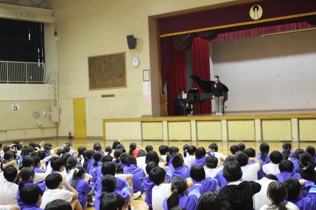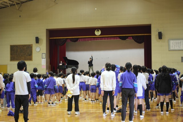 音楽集会が行われました。今回は第1回ということで、今月の歌「校歌」を歌いました。体育館いっぱいにきれいな声が響きました。